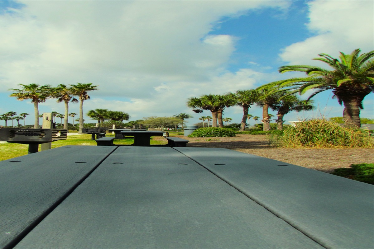 🧺 Grills and picnic tables at the north side of the Clubhouse in front of the parking