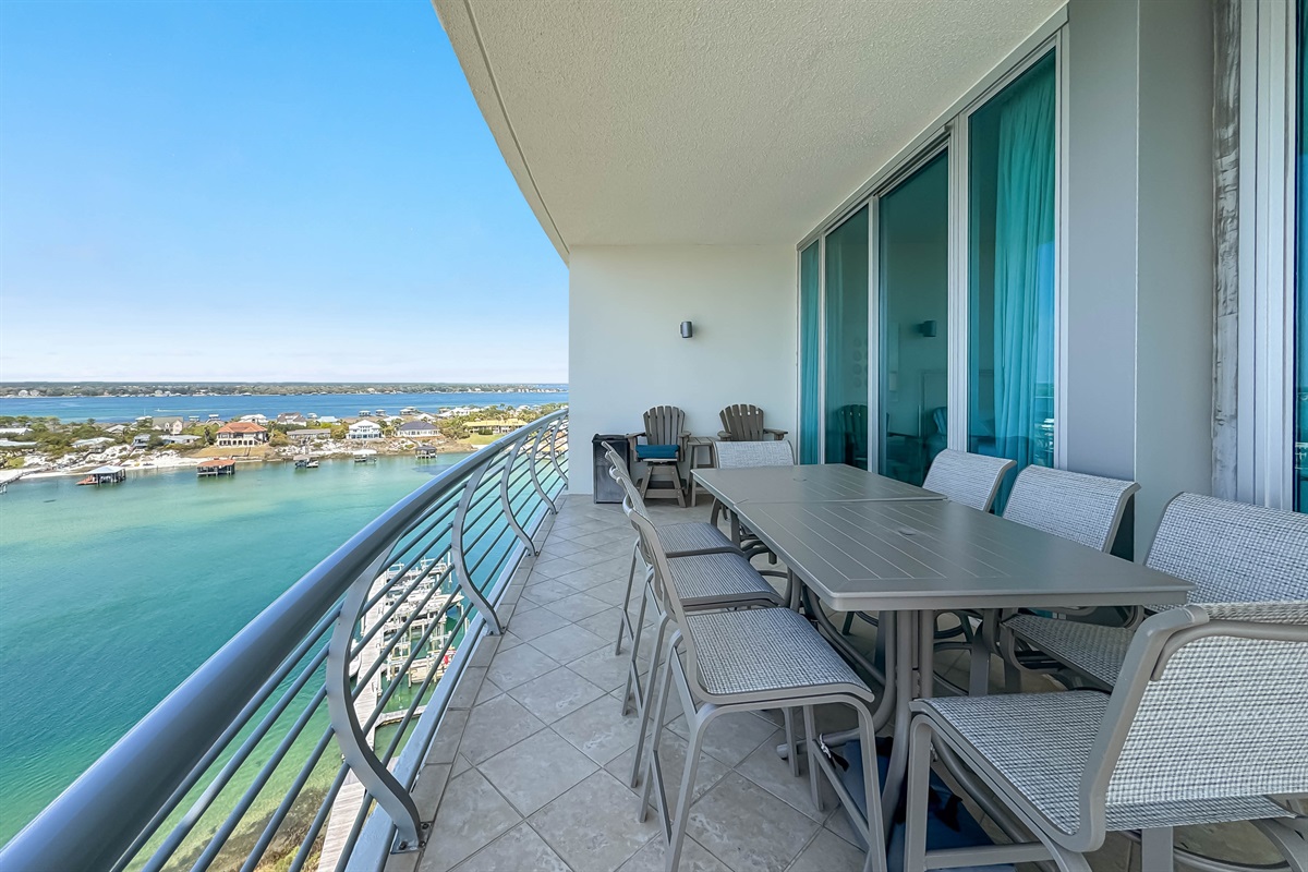 Bella Luna boasts views of the the Gulf of Mexico, the Ole River, Ono Island, and Bayou Saint John. This provides a scenic panoramic views of the Gulf and Ole River. Never miss a sunset with the surround views of the Gulf and the Bays facing West on this wrap around balcony. All bedrooms have balcony access.