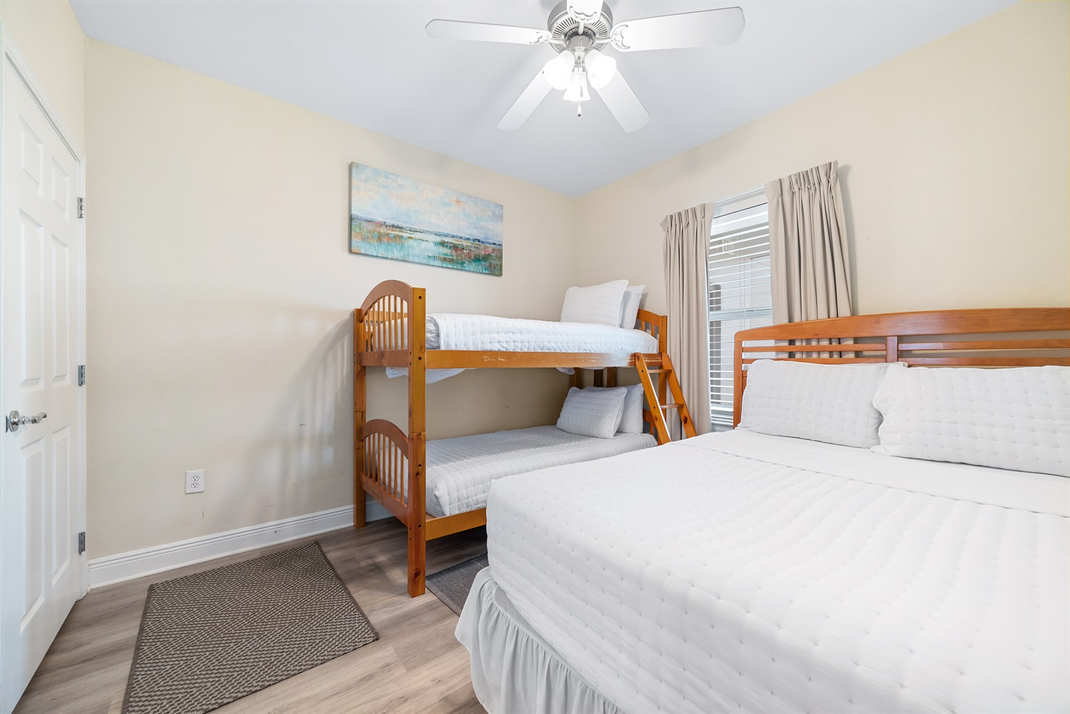 🛌 Guest room features a cozy Queen-size bed and Twin bunk bed, flat-screen TV, and easy bathroom access.