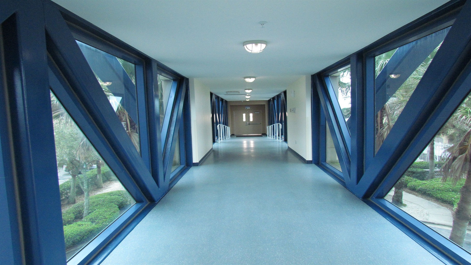 This skybridge allows you to get from the building to the beach in air-conditioned comfort, unlike most condos where you have to walk outside across the street which can be hot or cold depending on the season.