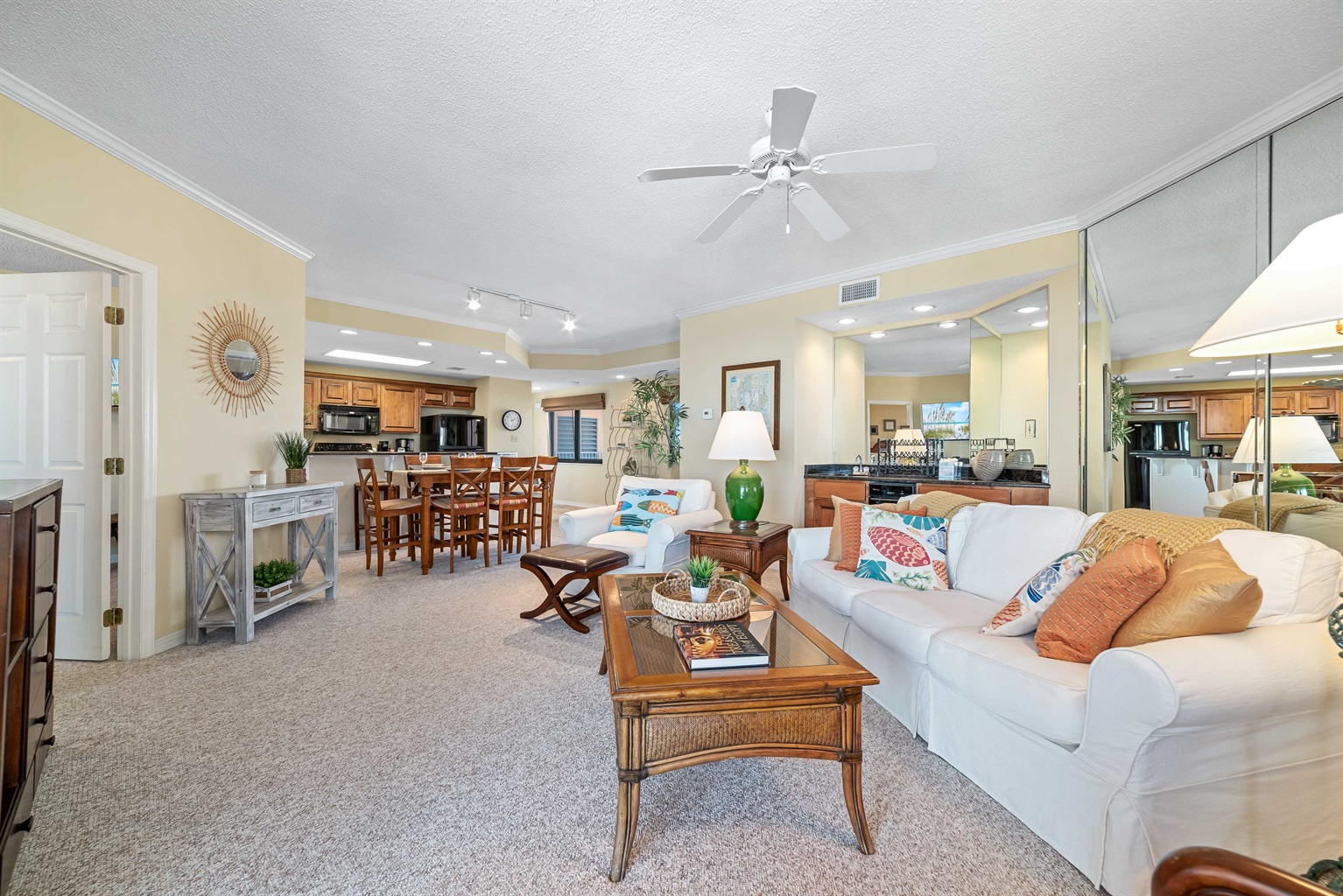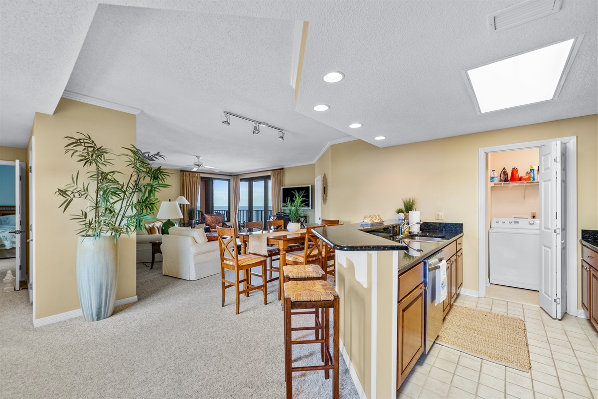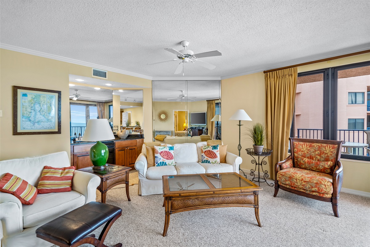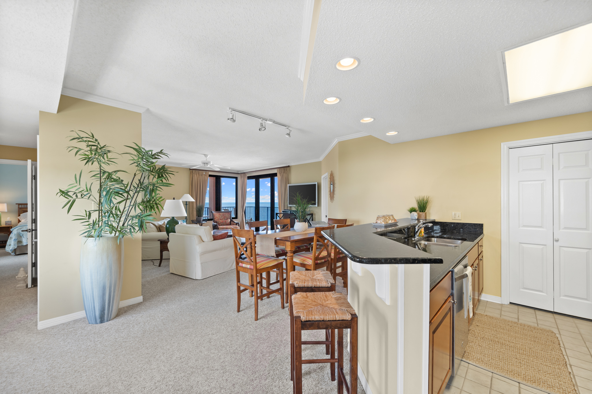 🌅 Perched on the eighth floor, this east-corner unit is bathed in natural light from three exposures, offering breathtaking views of the emerald waters and tranquil Cotton Bayou.