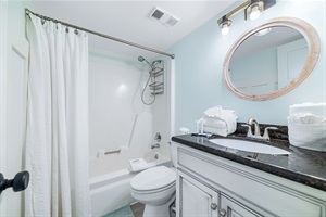Accommodate additional guests with the 2nd guest room featuring a Queen-size bed and a Full-size bed, a flat-screen TV, and easy access to the guest bathroom.
