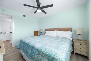 This elegant guest room features a King-size bed, a flat-screen TV, and easy access to the guest bathroom. Perfect for additional couple or room for more friends.